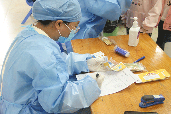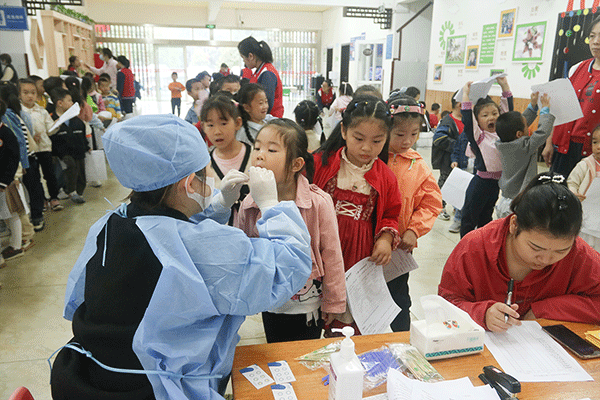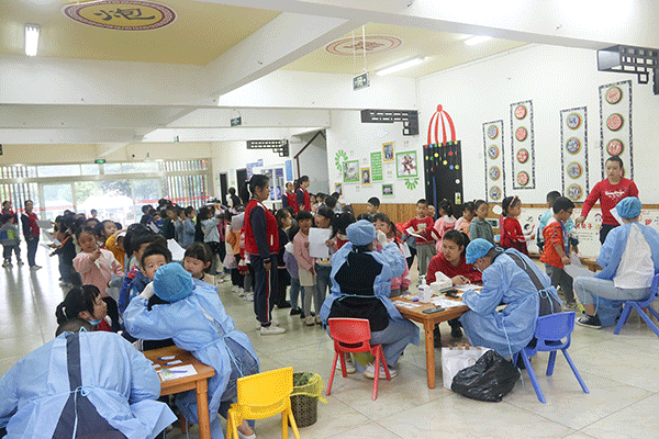 19日当天,医务人员早早到达现场做好准备,小朋友在老师带领下有序入场。医务人员对每一位小朋友都进行了认真细致的口腔检查,并详细填写诊断书。有了此诊断书,家长可以对小朋友的牙齿情况有清晰的掌握,以便及时做出对应的处理。